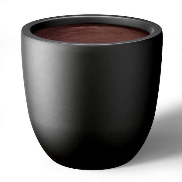 18 in. Large Charcoal Black (Enhanced Interior) Concrete Round Planter / Pot with Drainage Holes