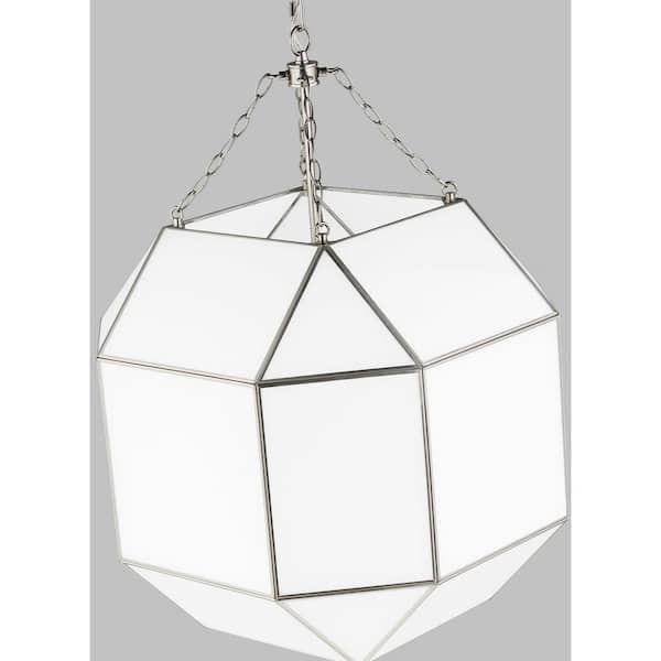 Morrison 4-Light Brushed Nickel Large Lantern Hanging Pendant Light with White Glass Panel