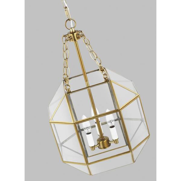 Morrison 60-Watt Small 3-Light Satin Brass Shaded Pendant Light with Clear Glass Shade