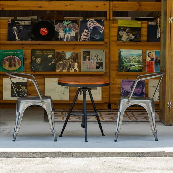 Mosan Silver Metal Tolix Style Stackable Arm Dining Chairs (Set of 4)