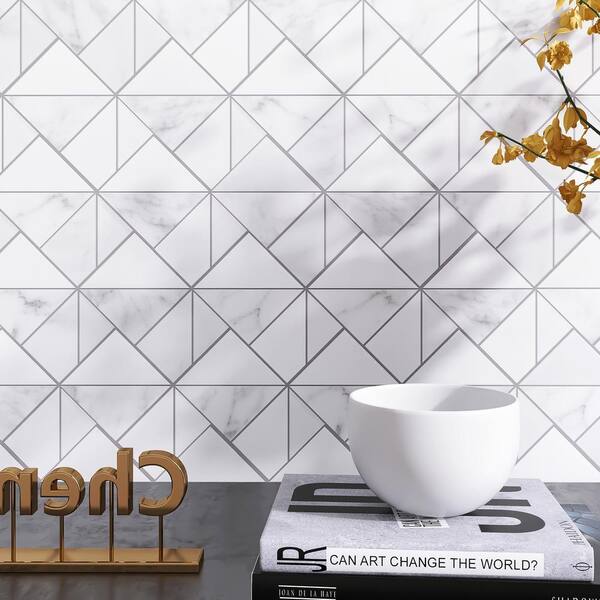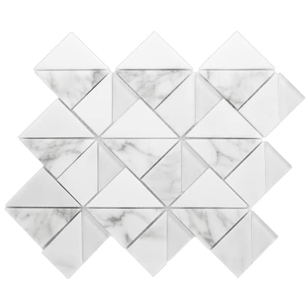 Mountaintop White 12.49 in. x 15.24 Geometric Glossy Glass Mosaic Tile Sample