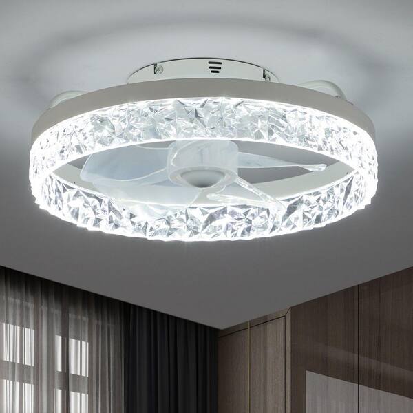 16 in. Indoor White LED Integrated Crystal Ceiling Fan with Light and Remote