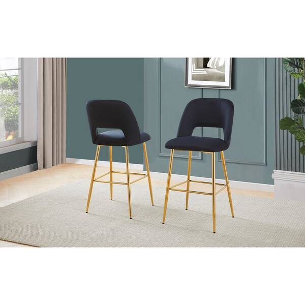 Moy 29 in. Black High Back Metal Frame Bar Stool With Velvet Fabric And Gold Chrome Legs (Set of 2)