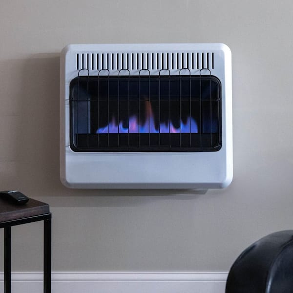 • 30,000 BTU blue flame heater runs on propane or natural gas