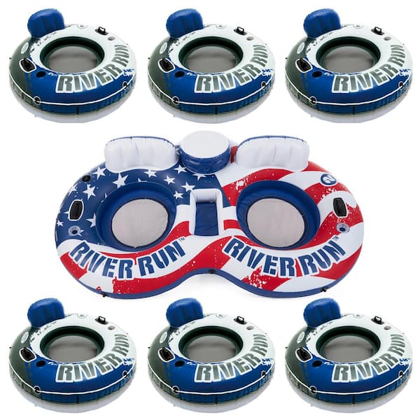 Multi-Color Vinyl American Flag 2-Person Float w/River Run 1 Person Tube (6-Pack), A Total Of (7-Pack)