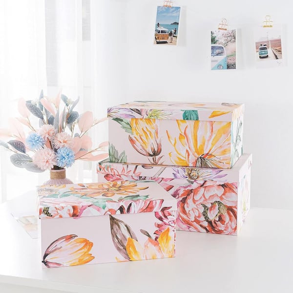 Multi-Colored 16.5 in. x 11.5 in. Cardboard Decorative Boxes with Lids Set of 3