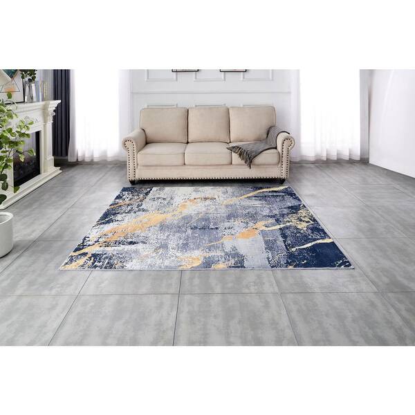 Multi-Colored 5 ft. x 6.6 ft. Abstract Design Blue Gray Yellow Machine Washable Super Soft Area Rug