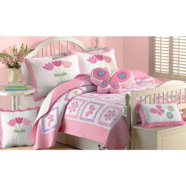 Multi-Colored Cotton Floral Butterfly Bloom Tulip Daisy Embroidery 18 in. x 14 in. x 4 in. Decor Throw Pillow (Set of 1)