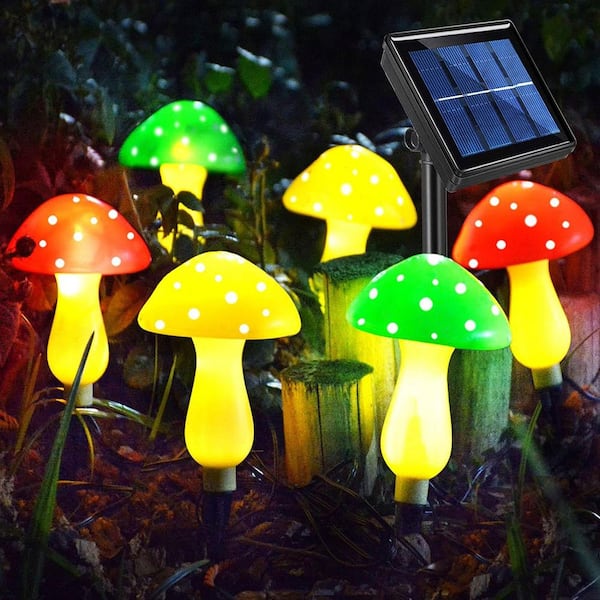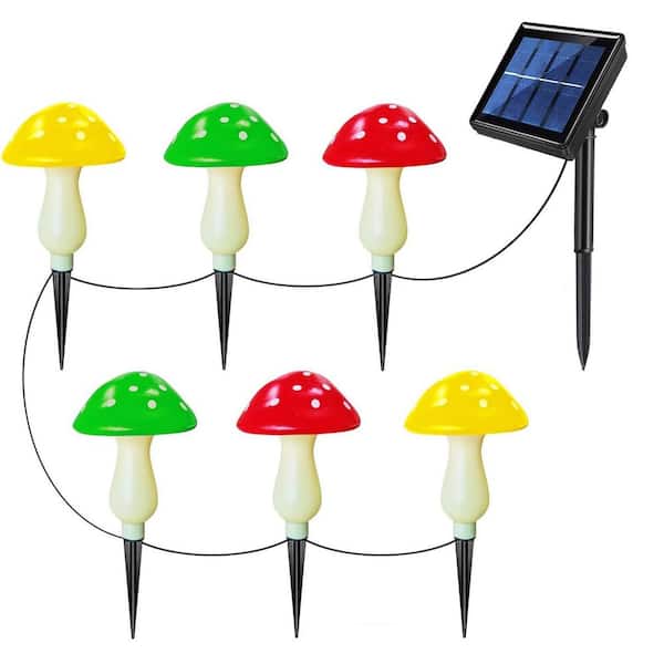 Multi-Colored Plastic Solar Outdoor Mushroom Lights 6-Pack