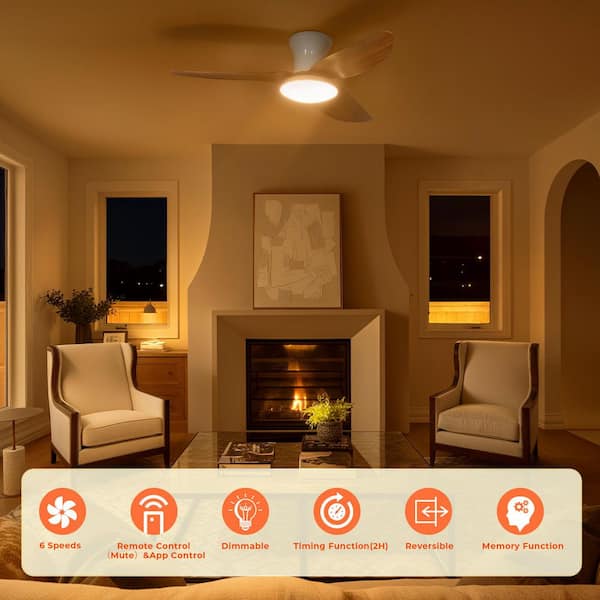 40 in. Indoor Wood Low Profile DC Motor Small Flush Mount Ceiling Fan Light with Integrated LED with Remote, 3 Blades