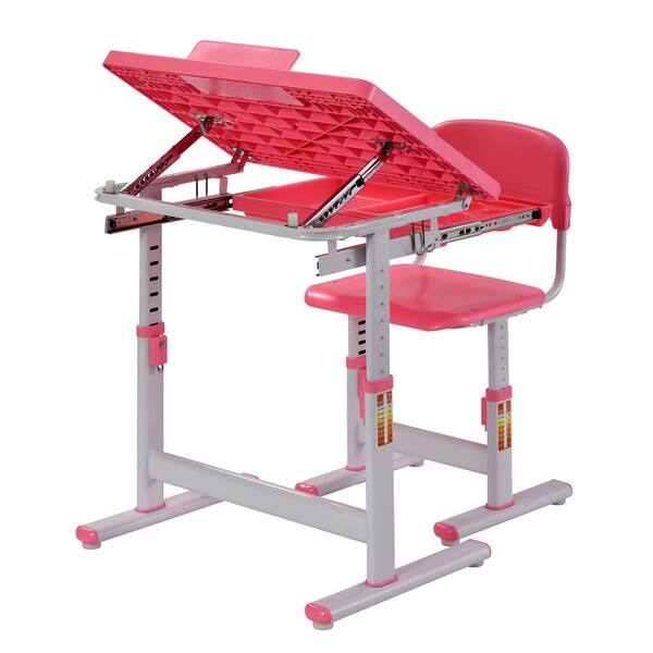 2-Piece Pink Ergonomic Adjustable Kids Standing Desk and Chair
