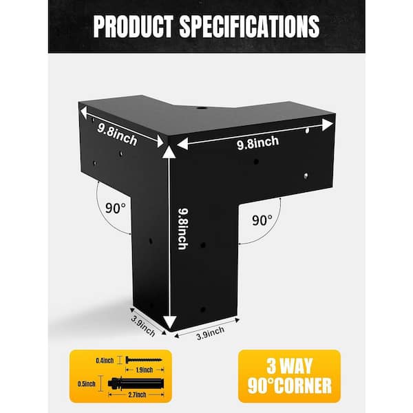 4 in. x 4 in. 3-Way Right Angle Corner Pergola Brackets for Gazebos, Patios and Gardens (4Pcs)