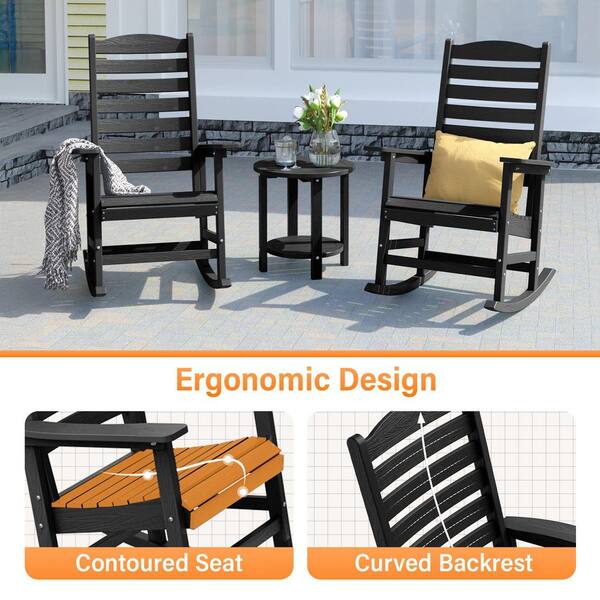 Black All Weather Resistant HIPS Plastic Patio Outdoor Rocking Chair for Lawn, Porch, Indoor and Garden (Set of 2)