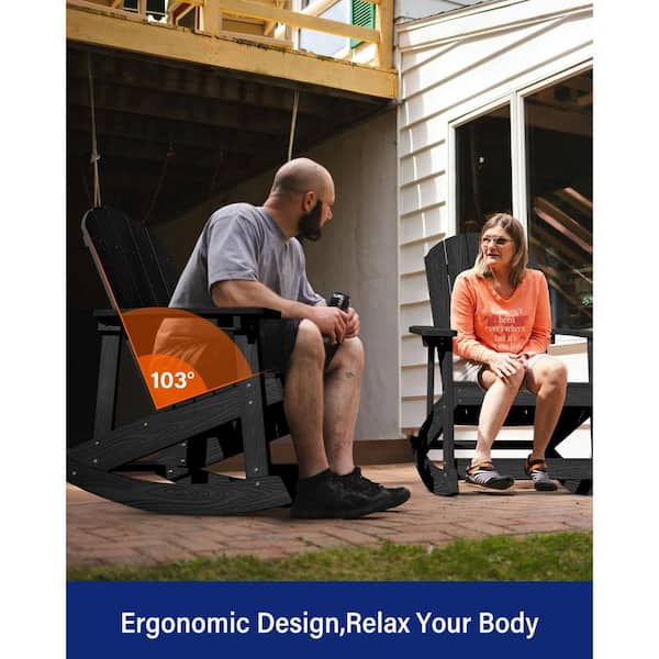 Black Plastic Oversized Adirondack Patio Outdoor Rocking Chair (4-Pack)