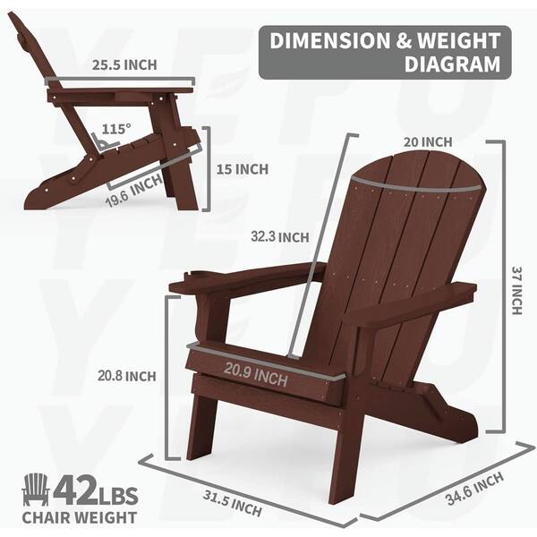Brown Plastic Outdoor Folding Adirondack Chair with Cup Holder (2-Pack)
