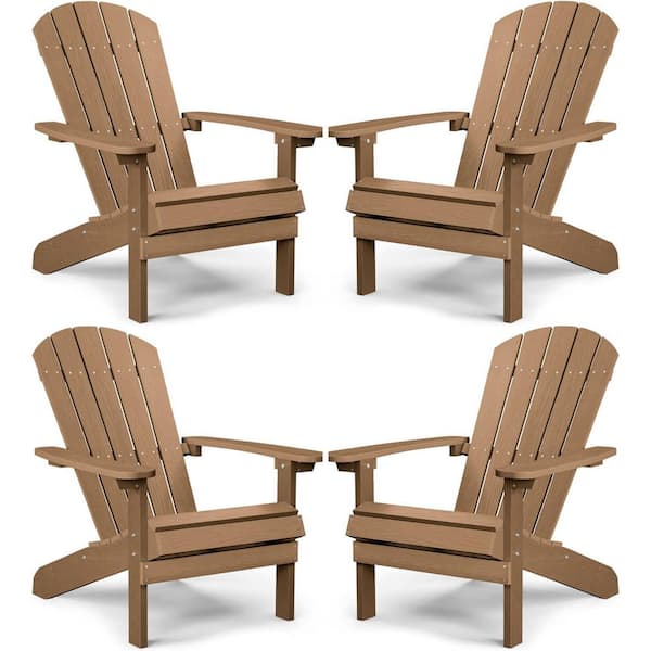 Classic Teak Plastic Outdoor Patio Adirondack Chair (Set of 4)