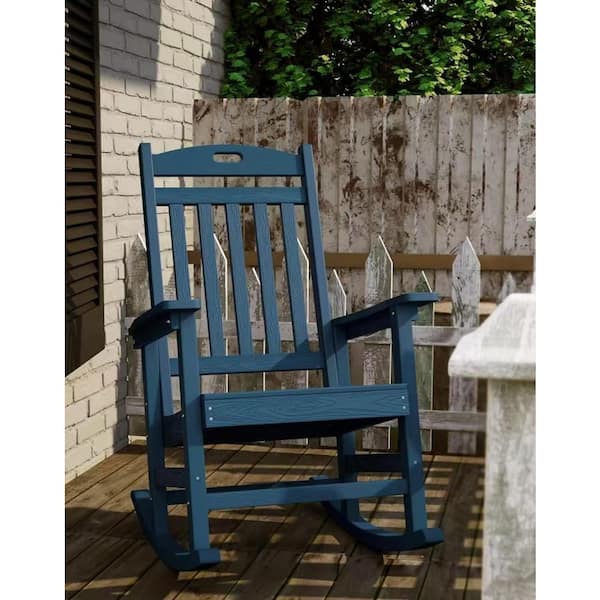 Navy Plastic Patio Outdoor Rocking Chair, Fire Pit Adirondack Rocker Chair with High Backrest (4-Pack)