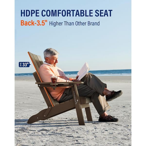 Oversized Teak HDPE Outdoor Plastic Folding Adirondack Chair with Cup Holder (Set of 4)