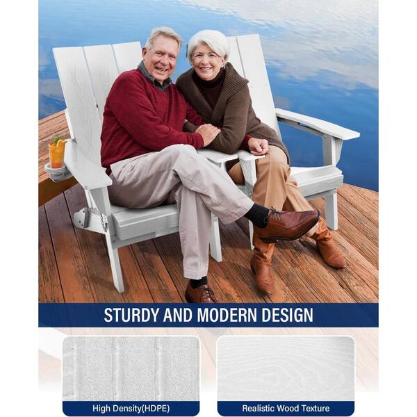 Oversized White HDPE Outdoor Plastic Folding Adirondack Chair with Cup Holder (Set of 2)