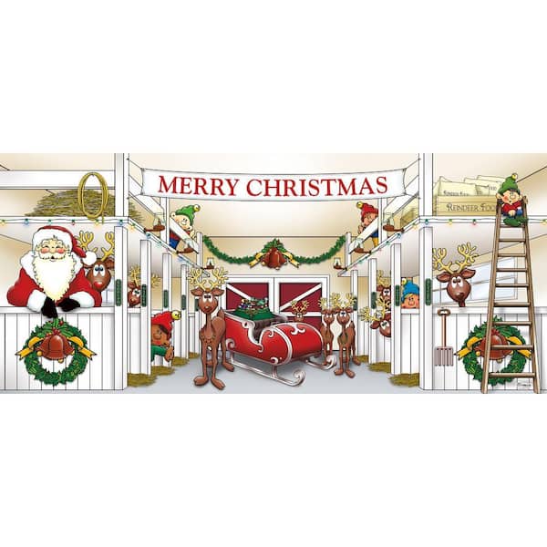 7 ft. x 16 ft. Huge Santa's Reindeer Barn Christmas Garage Door Decor Mural for Double Car Garage