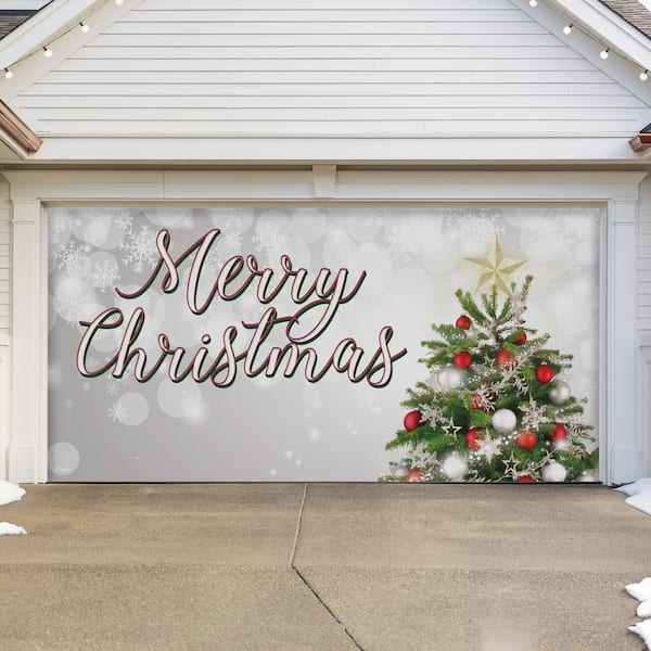 7 ft. x 16 ft. Merry Christmas Tree Christmas Garage Door Decor Mural for Double Car Garage