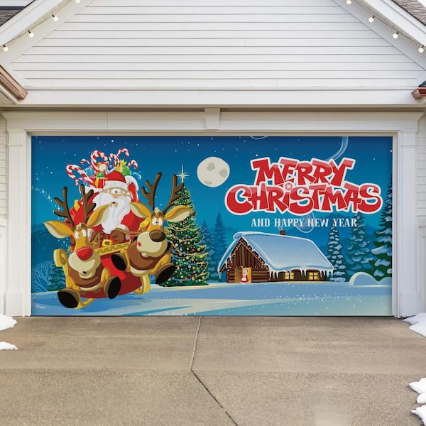 7 ft. x 16 ft. Santa's Take off Christmas Garage Door Decor Mural for Double Car Garage