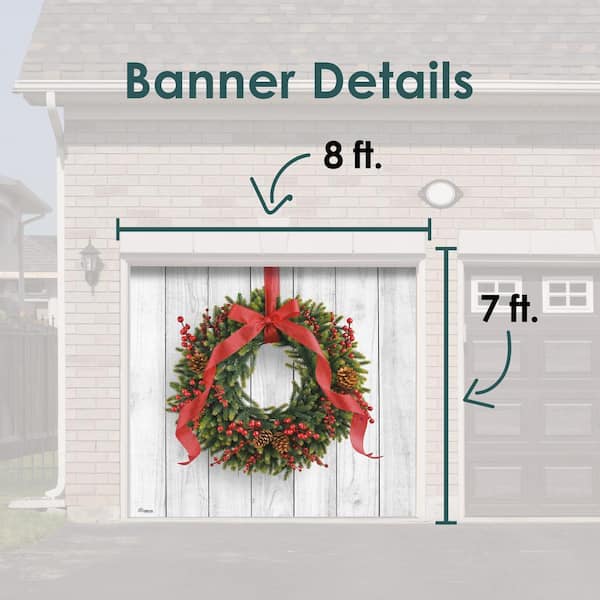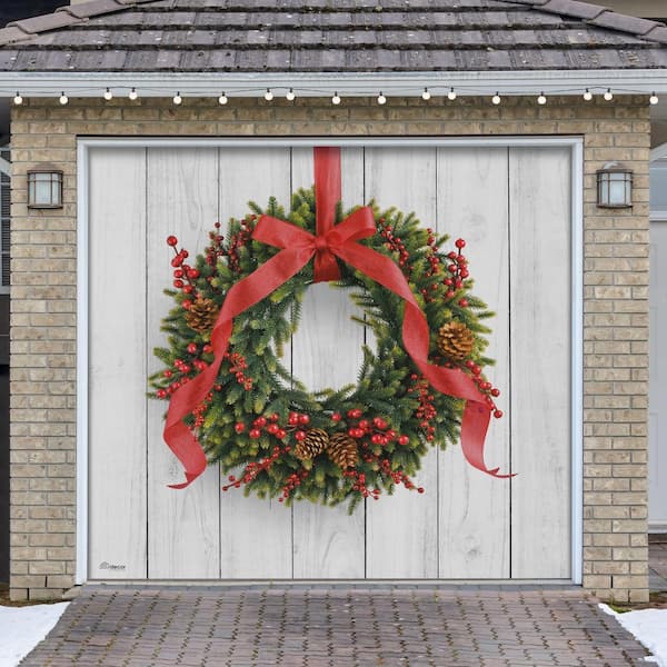 7 ft. x 8 ft. Christmas Wreath-Christmas Garage Door Decor Mural for Single Car Garage