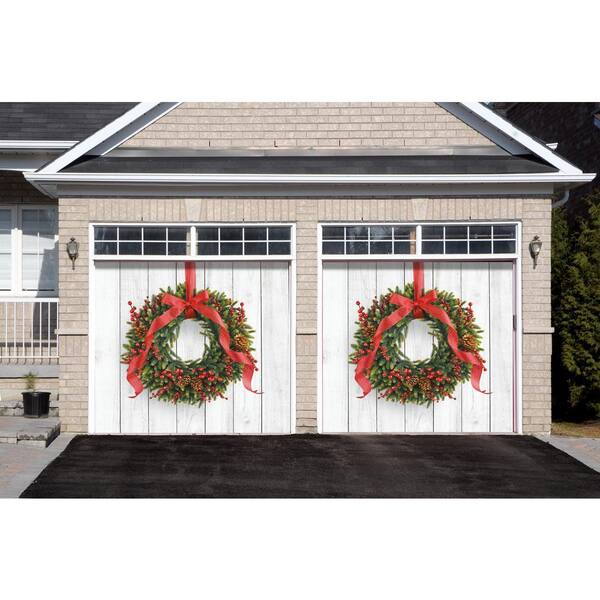 7 ft. x 8 ft. Christmas Wreath-Christmas Garage Door Decor Mural for Split Car Garage