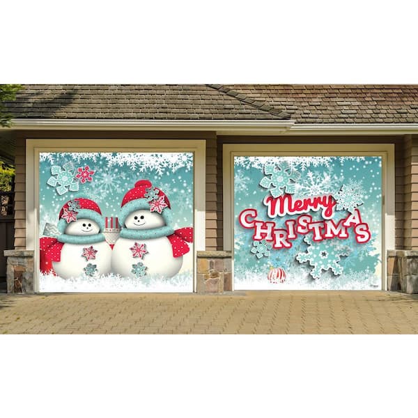 7 ft. x 8 ft. Snowman Christmas-Outdoor Holiday 2-Car Split Garage Door Decor Mural for Split Car Garage, 2-Graphic Kit