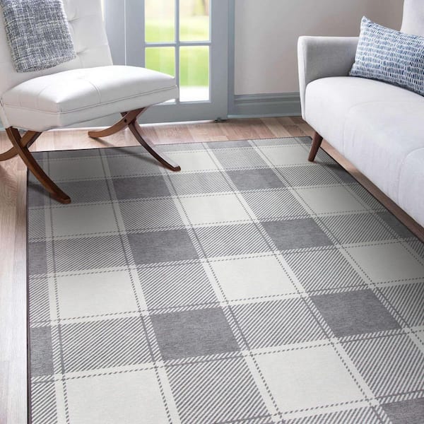 Buffalo Plaid Grey and White 5 ft. x 7 ft. Machine Washable Area Rug