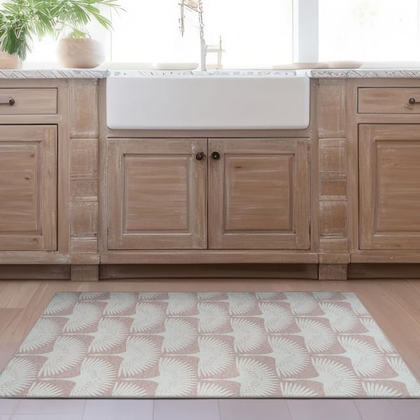 Flock Petal Pink/Off White Washable Rug 3 ft. x 5 ft. Area Rug