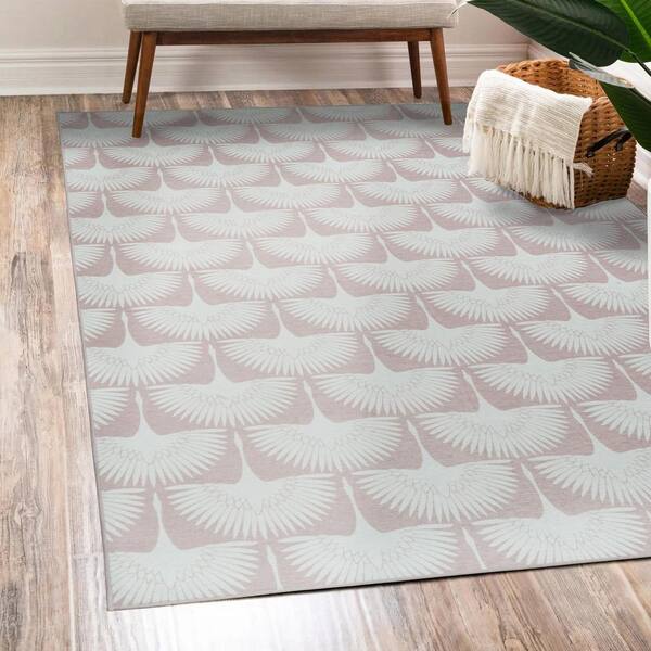 Flock Petal Pink/Off White Washable Rug 5 ft. x 7 ft. Area Rug