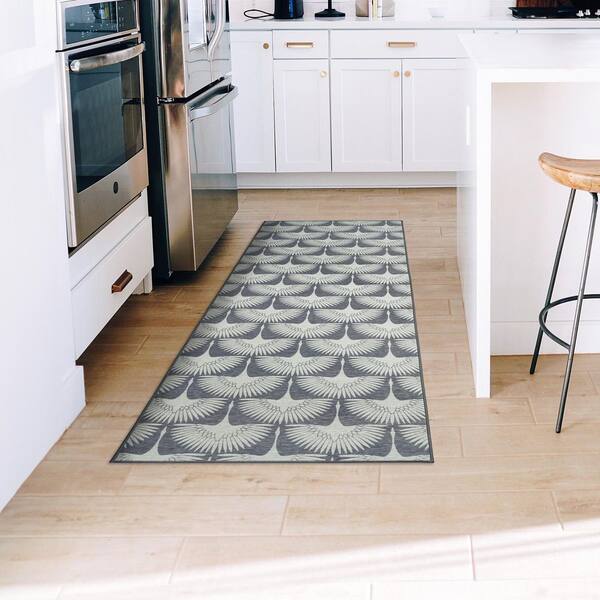 Flock Slate Grey/Off White Washable Rug 2.5 ft. x 7 ft. Runner Rug