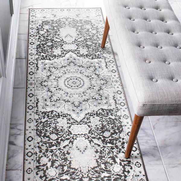 Parviz Grey Medallion Washable 2.5 ft. x 7 ft. Runner Rug