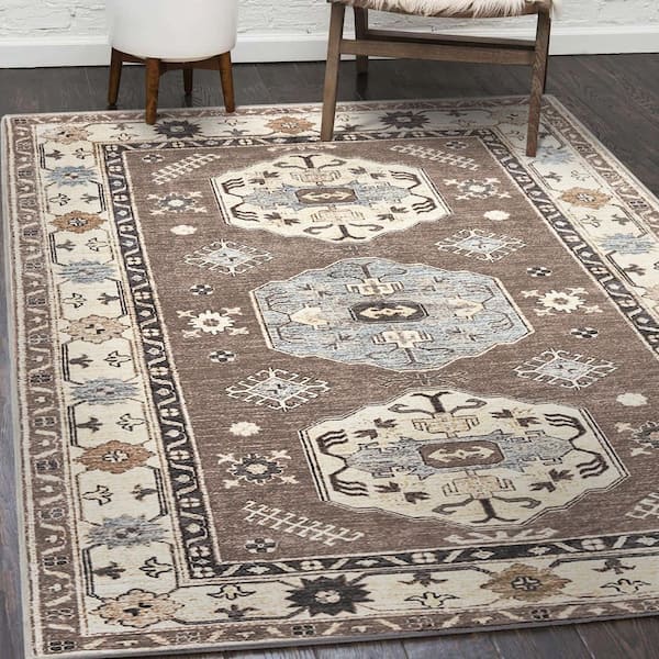 Shary Coffee Brown/Beige Washable Rug 5 ft. x 7 ft. Area Rug