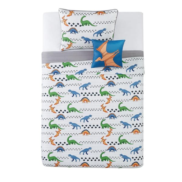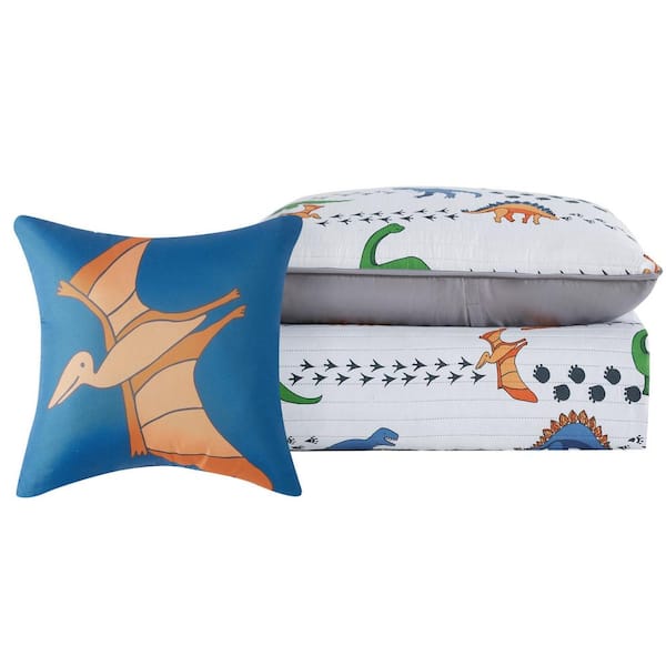 Dino Tracks 3-Piece Multi-Colored Microfiber Twin Quilt Set