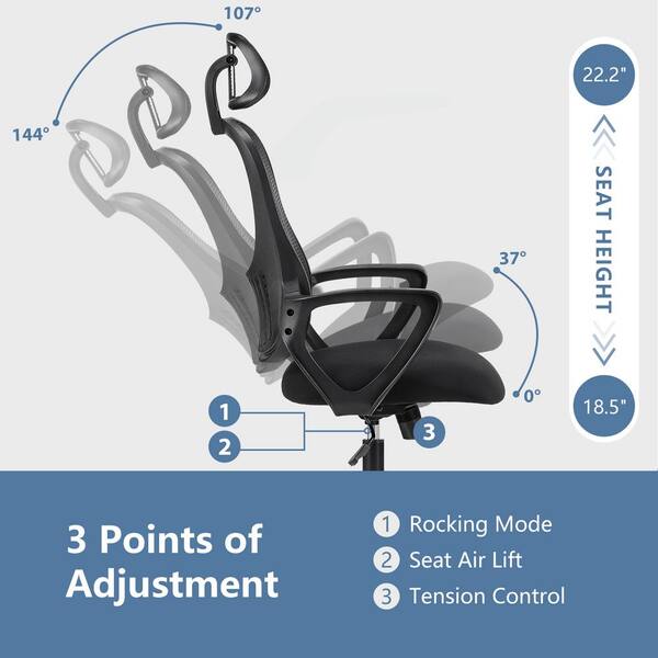 Ergonomic Black Mesh Chair Executive Home Office Chairs with Lumbar Support Armrest Rolling Swivel Adjustable High-Back
