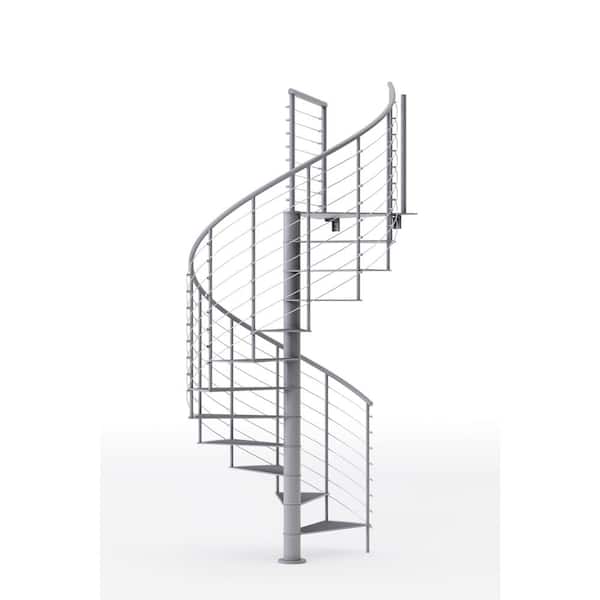 Hayden Gray Interior 60in Diameter, Fits Height 119in - 133in, 1 42in Tall Platform Rail Spiral Staircase Kit