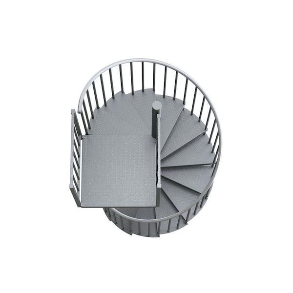 Reroute Galvanized Exterior 60in Diameter, Fits Height 85in - 95in, 2 36in Tall Platform Rails Spiral Staircase Kit