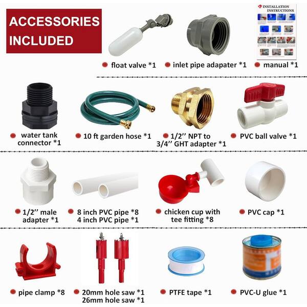 10.4 in. H 9.4 in. W 5.3 in. D PVC Automatic Chicken Watering System with 45 Accessories