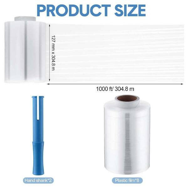 11.44 lb. 15.16 x 13.7 x 4.09 in. PE Stretch Wrap Roll with Handles for Moving and Packaging Clear Shrink Film 8-Pieces