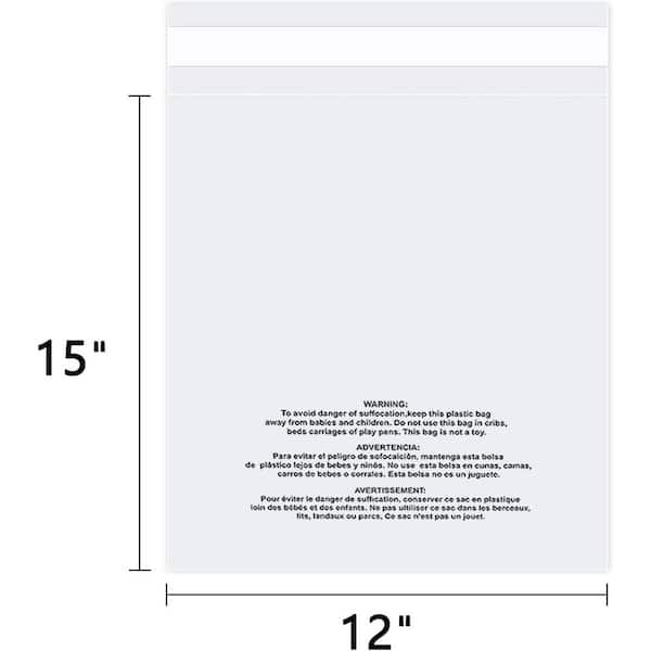12 x 15 Clear Plastic Poly Bags with Suffocation Warning Resealable Adhesive 200 Count for Clothing and Shipping