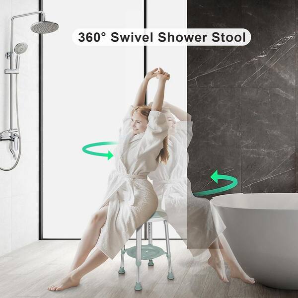 13 in. W Adjustable Tub Seat Plastic Shower Stool in Green w/ Storage Tray Anti-Skid Feet for Seniors Handicap 350 lbs.