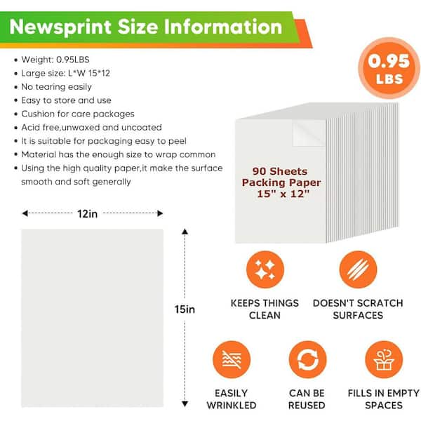 15 x 12 Packing Paper 90-Sheets Newsprint Wrapping for Arts Crafts Moving Shipping Packaging Boxes Filler