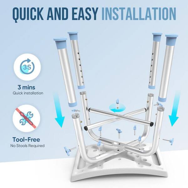 16.5 in. W 6 Adjustable Height Anti-Slip Heavy Duty Aluminum Shower Stool in Blue for Inside Shower, 500 lb. Capacity