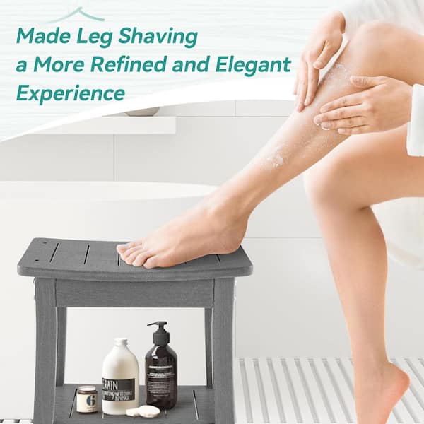 16.54 in. W Waterproof Plastic HDPE Shower Stool in Gray with Storage Shelf for Shaving Legs
