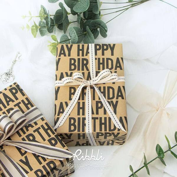 17.2 x 1.93 x 1.89 in. Thick Kraft Paper Birthday Wrapping Paper Vintage Style Brown with Black Pattern