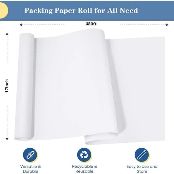 17 ft. W x 350 ft. L White Newsprint Packing Paper Roll for Packing Moving Wrapping Eco-friendly Reusable 1-Pack