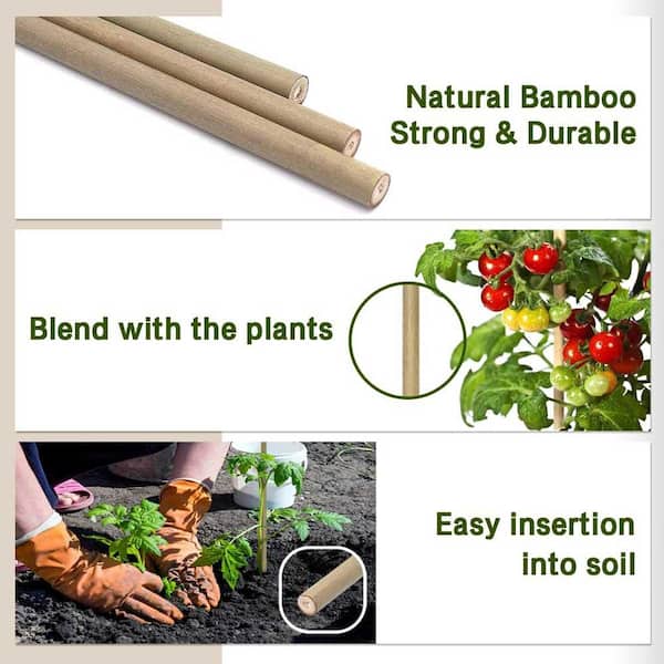 18 in. Natural Bamboo Plant Stakes for Tomatoes, Beans, Vegetables, and Potted Plants, 20-Pack
