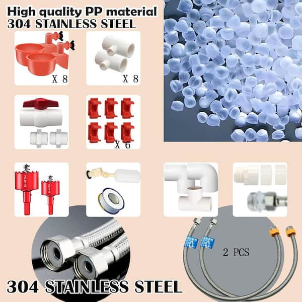 2 Hose Automatic Poultry Waterer System DIY Kit with Chicken Duck Goose Water Cup 1/2 PVC Accessories